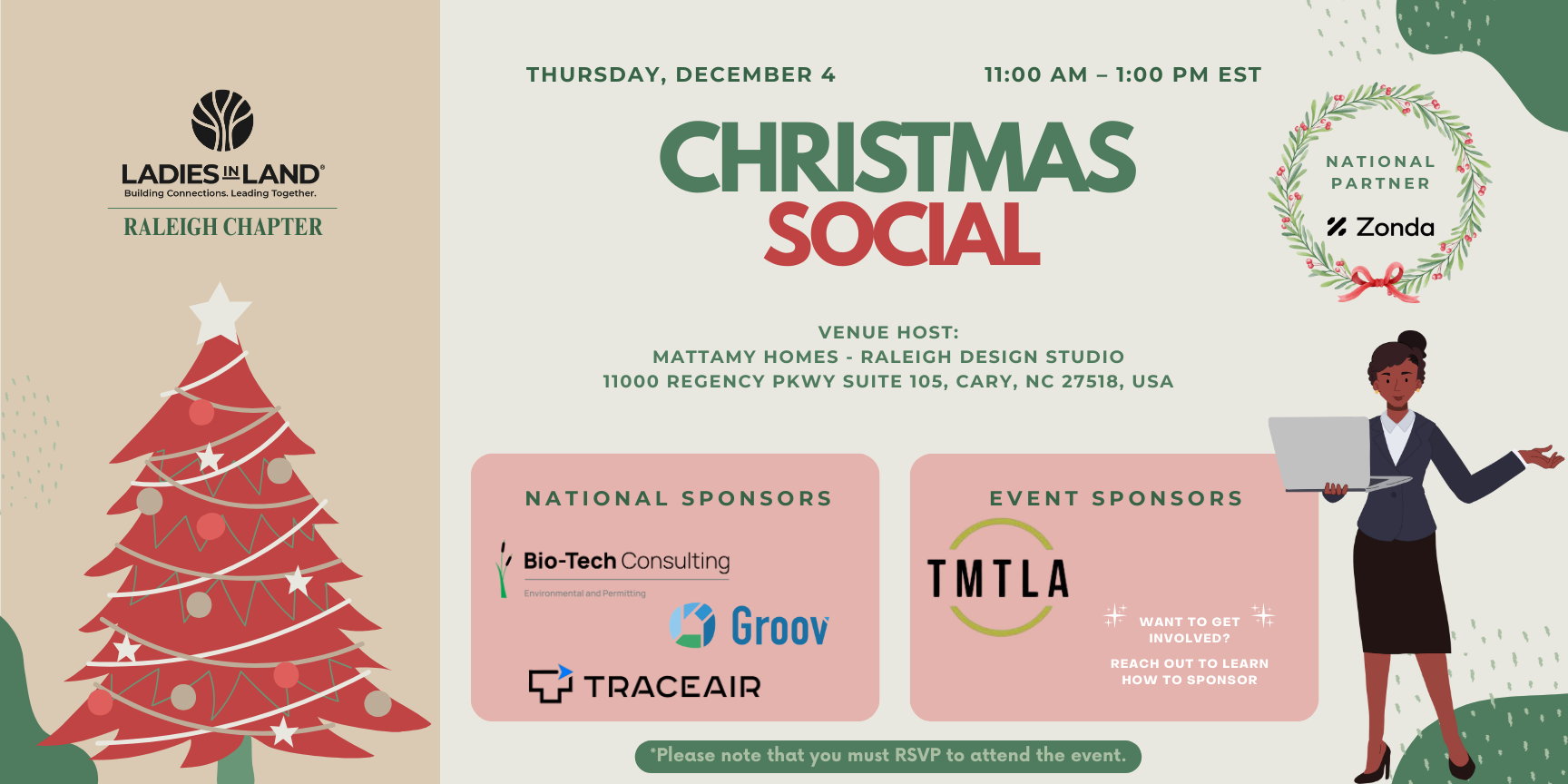 Join the Ladies in Land Raleigh Chapter on December 4th from 11:00 AM – 1:00 PM EST for a festive evening of connection, celebration, and holiday cheer at Mattamy Homes.