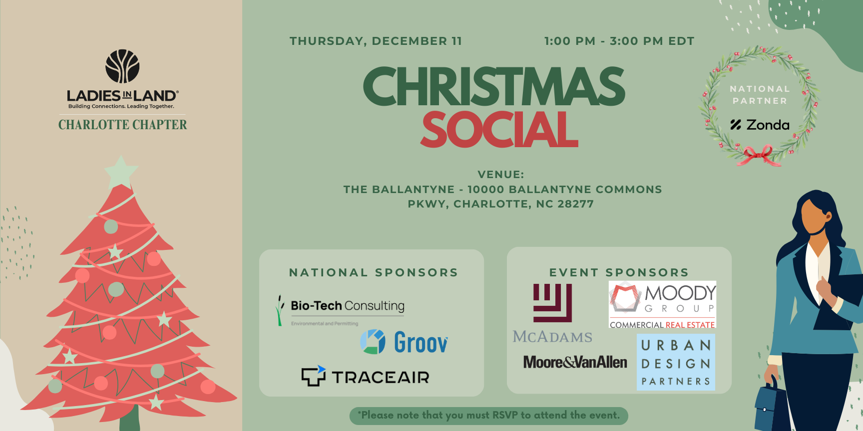 Join the Ladies in Land Charlotte Chapter on December 11th from 1:00AM – 3:00 PM EST for a festive evening of connection, celebration, and holiday cheer at The Ballantyne.