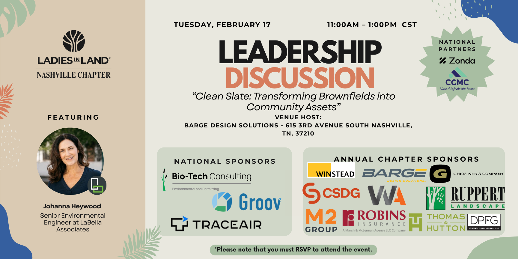 Featuring Johanna Heywood of LaBella Associates, this session will focus on “Brownfield Remediation.” This in-person Lunch & Learn will offer valuable networking opportunities with land development professionals in the Nashville area and is designed to foster meaningful conversation, knowledge sharing, and community building among women working in land and development-related fields.