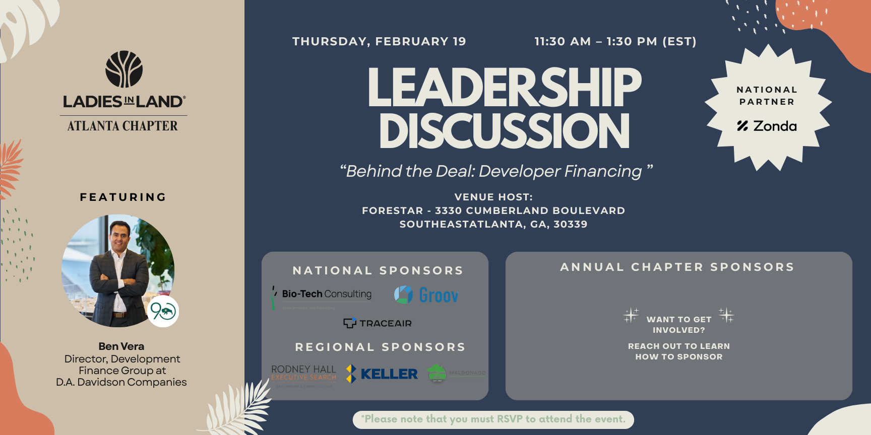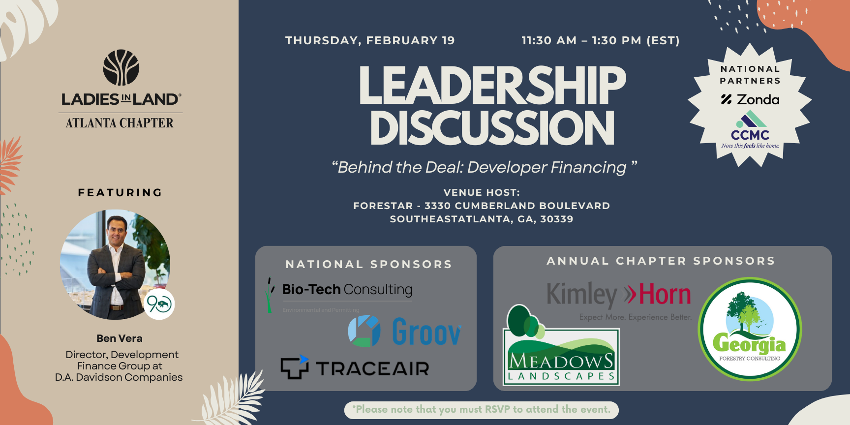 Please note: All attendees will be vetted to confirm active involvement in the land development industry.