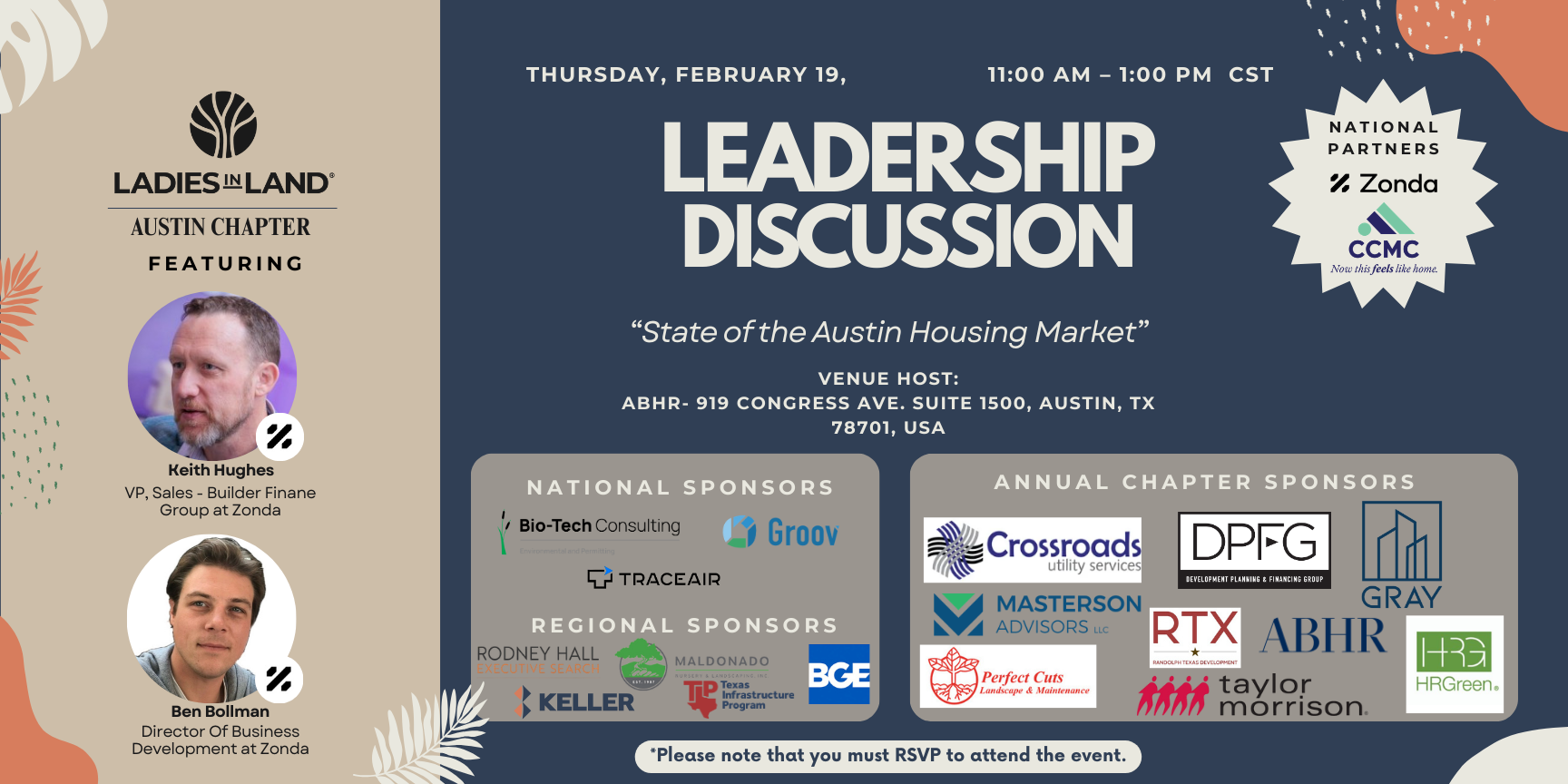 Please note: All attendees will be vetted to confirm active involvement in the land development industry.