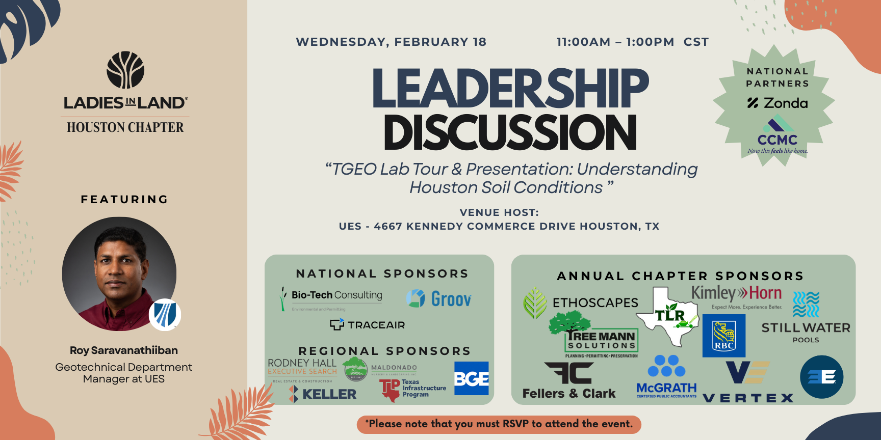 This session will feature Roy Saravanathiiban of UES and will include a presentation focused on understanding Houston soil conditions and their impact on development projects. Attendees will gain insight into the geotechnical process, including how soil data is evaluated and applied throughout the development lifecycle.